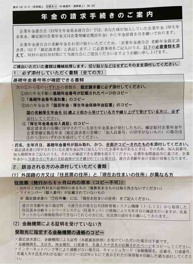 大型連休中の谷間の先日に届きました!裁定請求書。